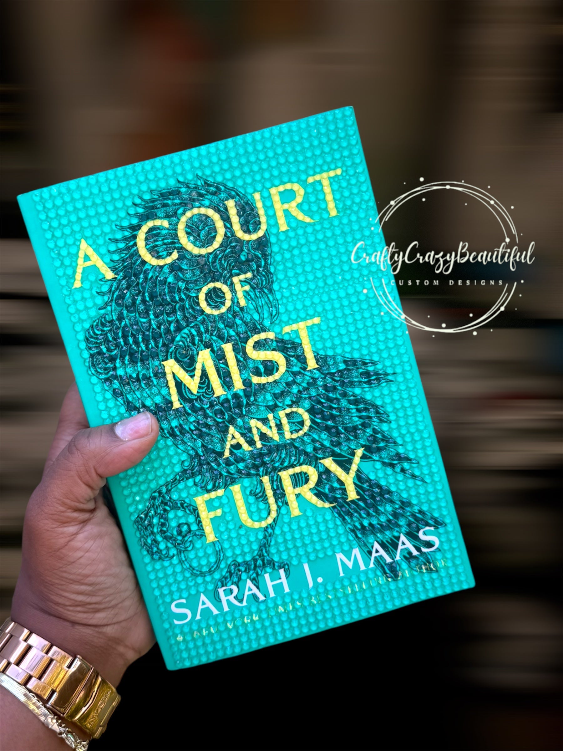 Step into the Night Court with this stunning custom edition of A Court of Mist and Fury by Sarah J. Maas. This soft cover book has been hand-decorated with premium rhinestones and glow-in-the-dark accents that shimmer by day and radiate by night.