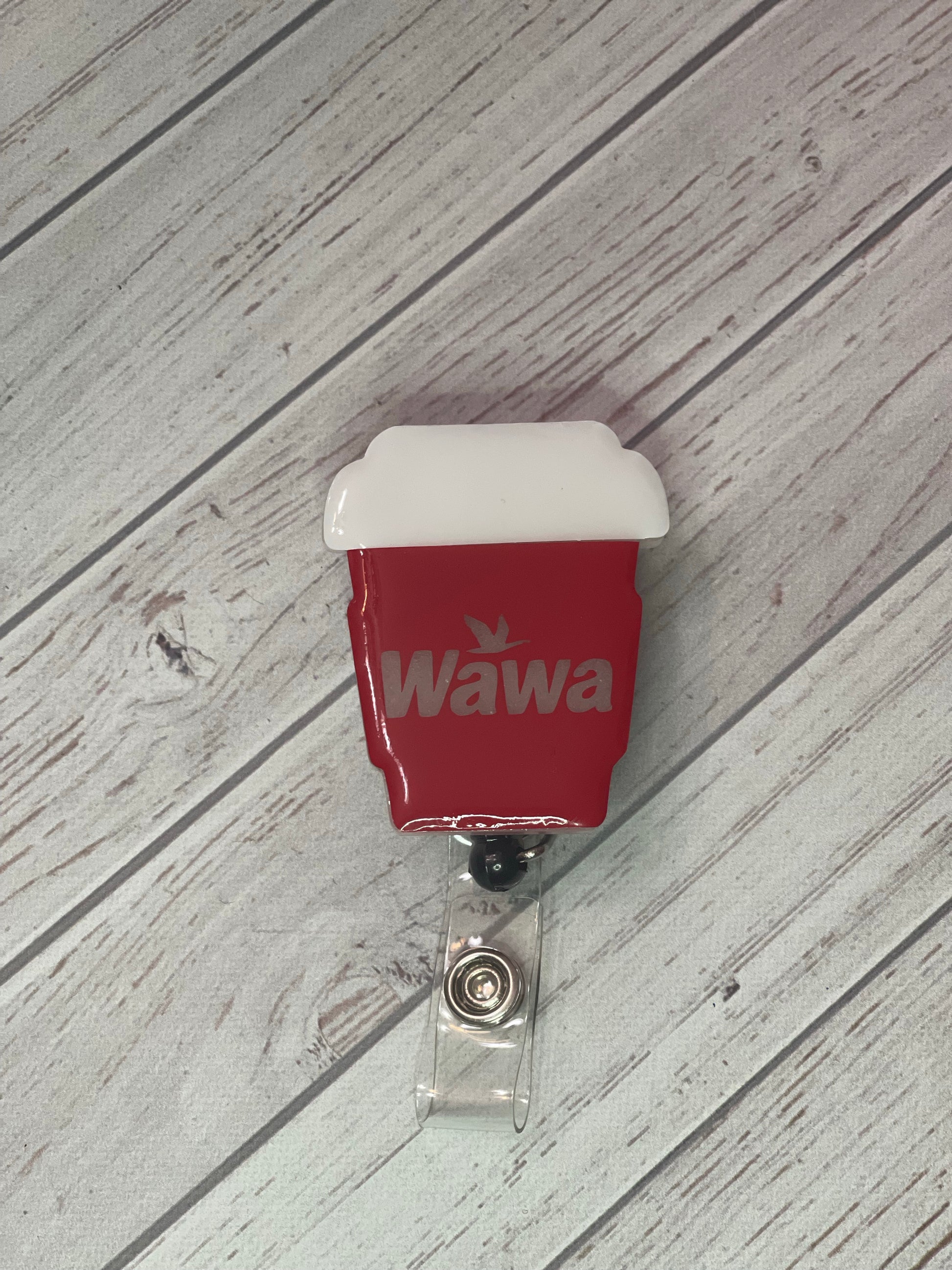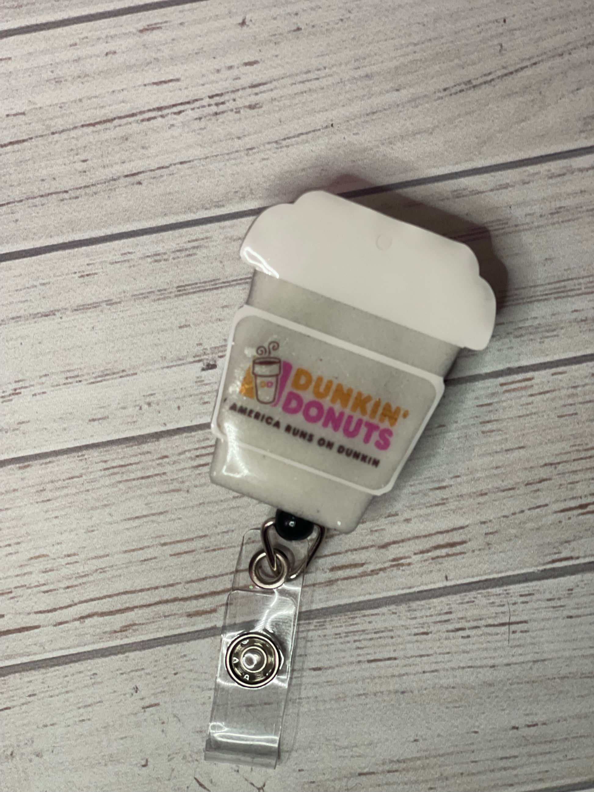 Show off your favorite cup of coffee with a custom badge reel